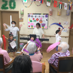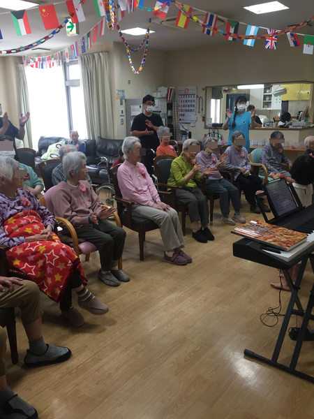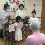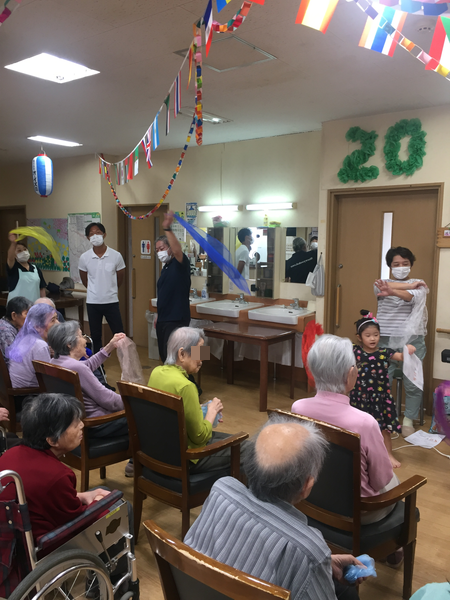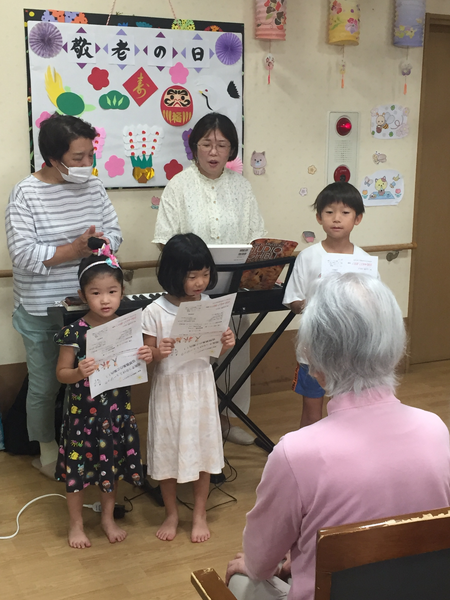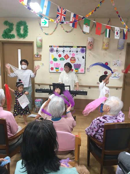 すずらん 9月15日 敬老会 9月15日、ゲストをお迎えし音楽会を開催致しました。ちびっ子による歌の披露やフルート演奏もあり、涙するご利用者の方もいらっしゃいました。 最後に色とりどりのスカーフを大きく左右に振りながら「虹」の歌を皆さんで大合唱♪ 音楽会の後は、敬老の日特別メニューとして「うなぎ御膳」を堪能され、皆さん大変喜ばれていました。 どうぞいつまでもお元気にお過ごしください。 2025年9月24日イベント,お知らせ,すずらん