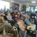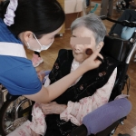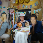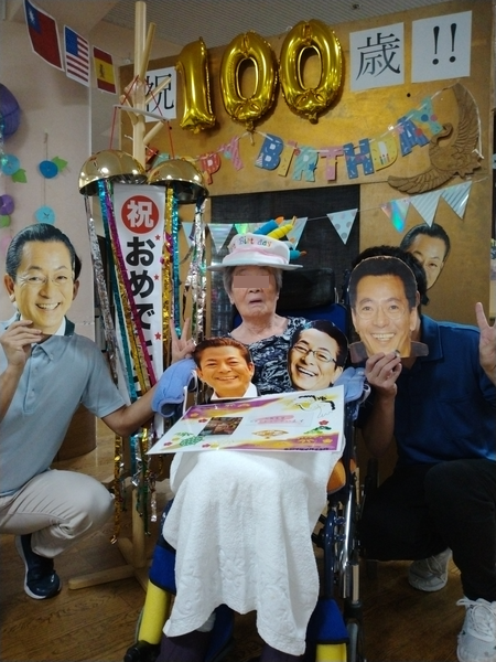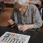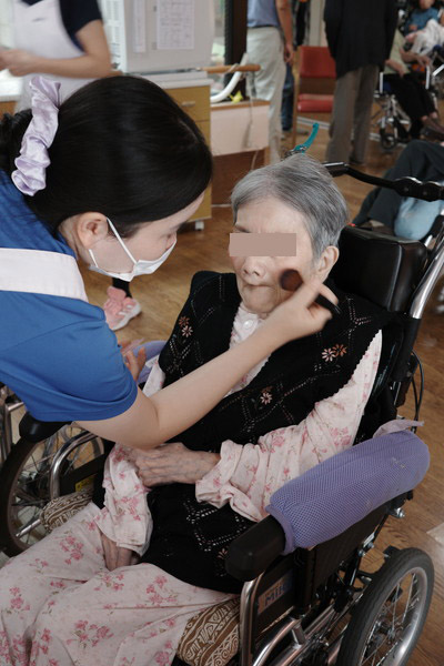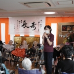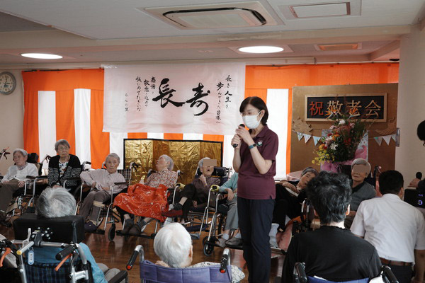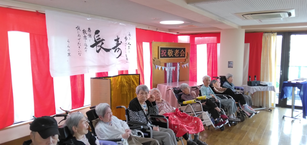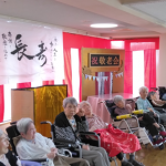 今年は「喜寿、傘寿、米寿、卒寿、白寿、百壽」のご長寿12名の方を代表して式典を行いました。開催前には衣装を決め化粧をして参加していただきました。