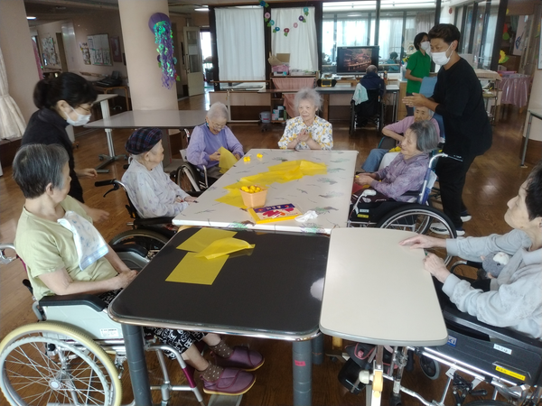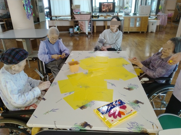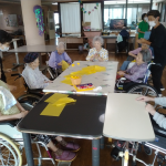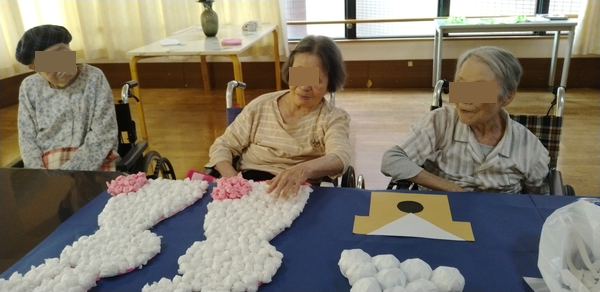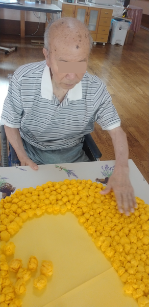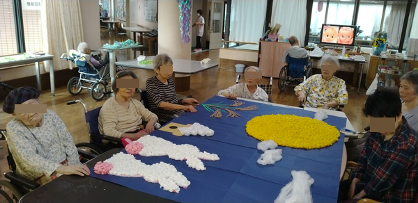 紙を丸めたり、貼ったりするのに苦労することもありましたが、完成したときには皆様も笑顔を見せてくれました。毎年市内で行われる「福祉作品展」にも出品したいと思います。