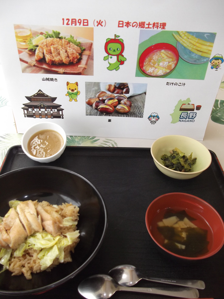 11月は世界の料理「ヨーロッパ」、12月は郷土料理「長野県 山賊焼き丼」です。
